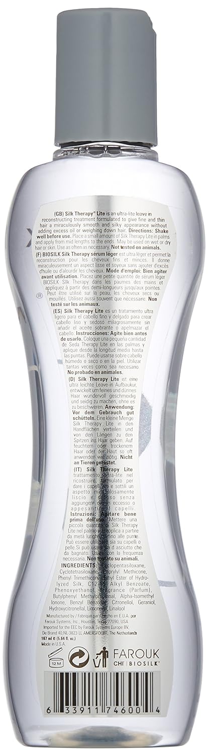 - BioSilk® Silk Therapy® Lite is an ultra-lite leave in reconstructing treatment formulated to give fine and thin hair a miraculously smooth and silky appearance without adding excess oil or weighing down hair.