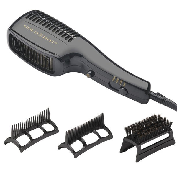 - Three easy-to-use attachments for styling variety (smoothing brush and two combs for detangling and straightening).