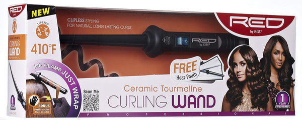 KISS - RED 3/4" to 3/8" Ceramic Tourmaline Curling Wand