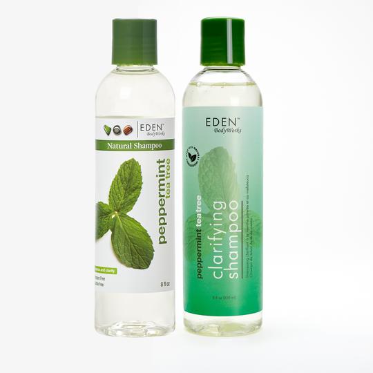 - A clarifying shampoo that's like a morning alarm to your senses and scalp! It removes product buildup, increases scalp circulation, and promotes a healthy hair growth environment. Made with Peppermint and Tea Tree Oils, this shampoo has therapeutic scalp tingling properties that assist in treating and preventing dandruff and itchiness. It will leave the scalp and hair feeling squeaky clean and invigorated.