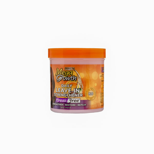 - PROVEN HAIR CARE - Mega Growth Break Free Daily Leave-In Strengthener protects, restores, repairs & rebuilds fragile, damaged hair. The unique blend strengthens hair to promote stronger, longer, and healthier hair growth.