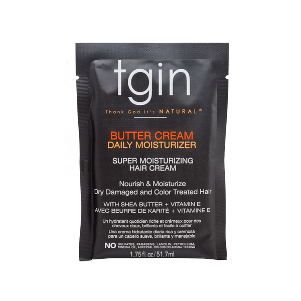 Make tgin Butter Cream Daily Moisturizer a part of your routine! The #1 complaint of most naturalistas is "dryness." In response to this we have formulated our tgin Butter Cream Daily Moisturizer for natural hair. Now you will never have to worry about frizz or dryness again. We intentionally use ingredients like Shea butter, Cocoa butter, and Vitamin E oil both to target dryness at its source by moisturizing from the roots to the tips and to prevent dryness. This everyday moisturizer aims to give you consistently soft, shiny, manageable curls while nourishing your scalp. Our products have been featured in several publications such as Essence, Ebony, Marie Claire, Black Enterprise, USA Today, Heart and Soul, and Sophisticate's Black Hair. This product does not contain any parabens, sulfates, petrolatum, lanolin, or artificial colors, and no animal were used during testing.